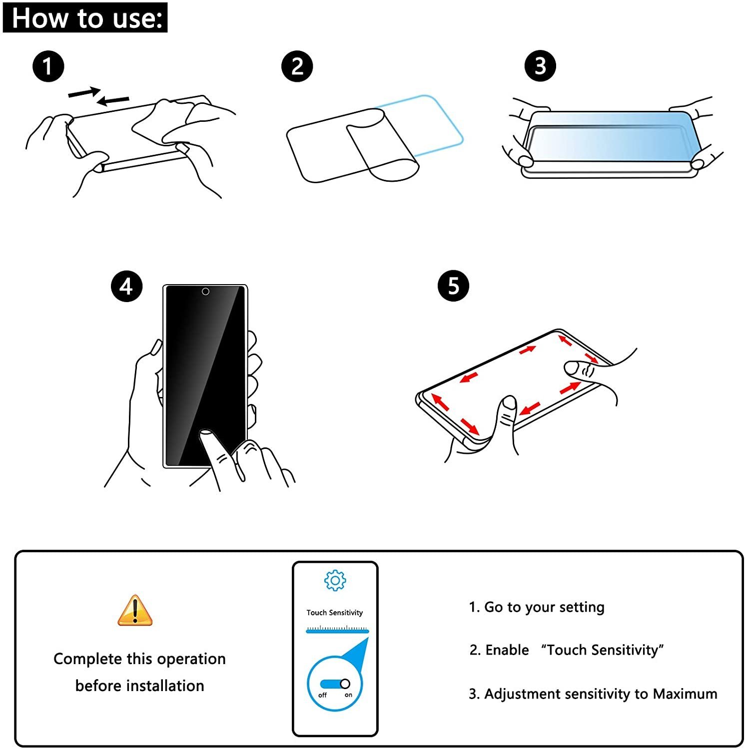 【OBS】 För att säkerställa fingeravtrycksigenkänning, aktivera beröringskänslighetsläget (Inställningar> Display> Touch-känslighet), registrera ditt fingeravtryck innan du installerar och tryck ut alla bubblor runt sensorn efter installationen.