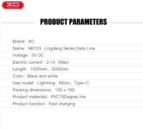 XO NB103 är en kabel utrustad med en 8-polig kontakt. Kabeln har designats för att ge största möjliga komfort för dagligt bruk. Tillverkad av flexibel silikon för att säkerställa längsta möjliga livslängd.