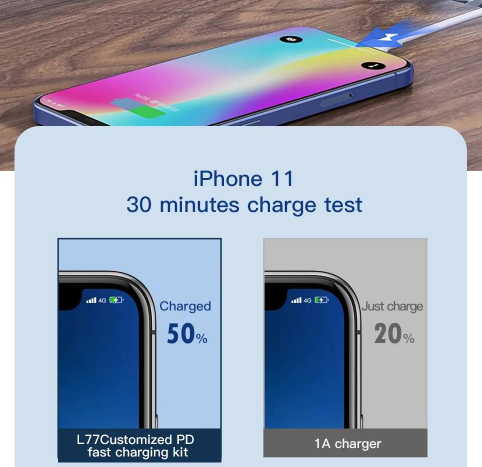 XO L77 är en avancerad laddare med ett enda PD-typ-C 20W-uttag, till vilket du kan ansluta en lämplig kabel för att ladda mobila enheter för att använda laddarens fulla kraft. Den ger tillräckligt med energi för att snabbt ladda även de största tillgängliga mobila enheterna, och den medföljande USB-C – Lightning-kabeln gör att du kan använda den direkt efter köpet. Den klassiska looken passar alla typer av interiörer och kvaliteten på utförande indikerar att det är en solid och hållbar enhet.