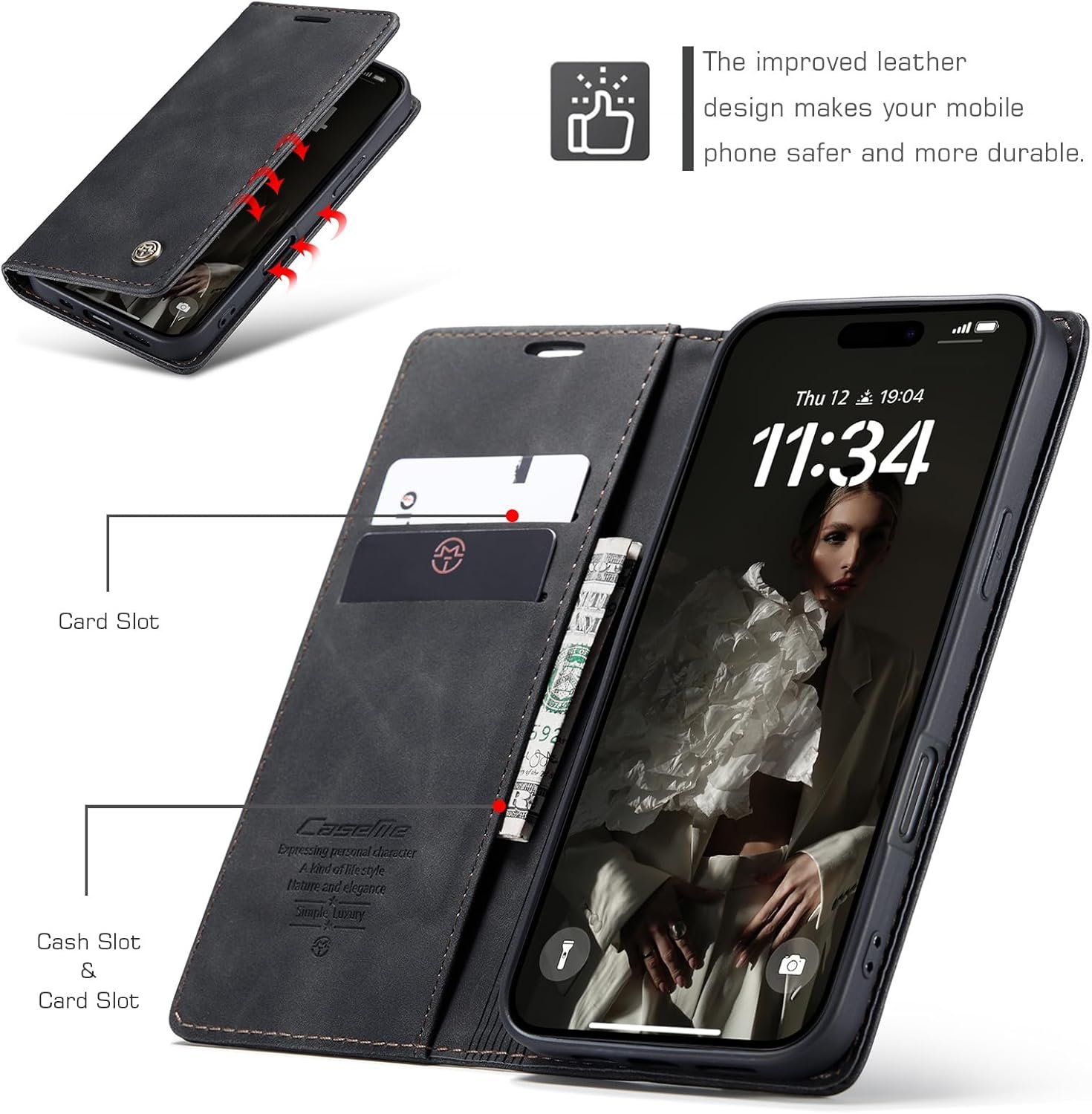 Detta plånboksfodral kombinerar elegant design med praktisk funktion.