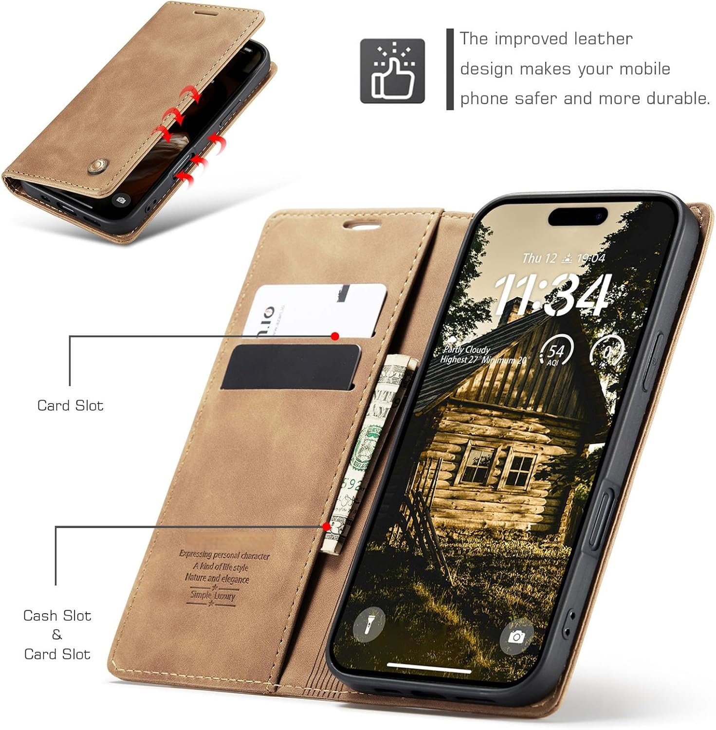 Detta plånboksfodral kombinerar elegant design med praktisk funktion.