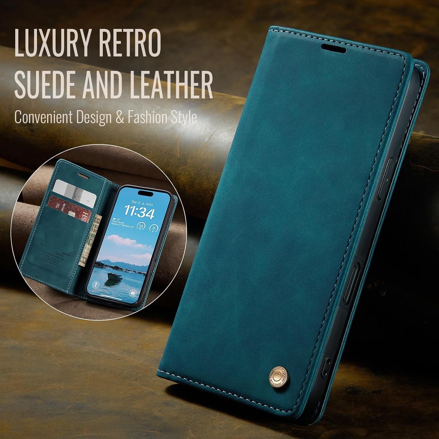 Detta plånboksfodral kombinerar elegant design med praktisk funktion.