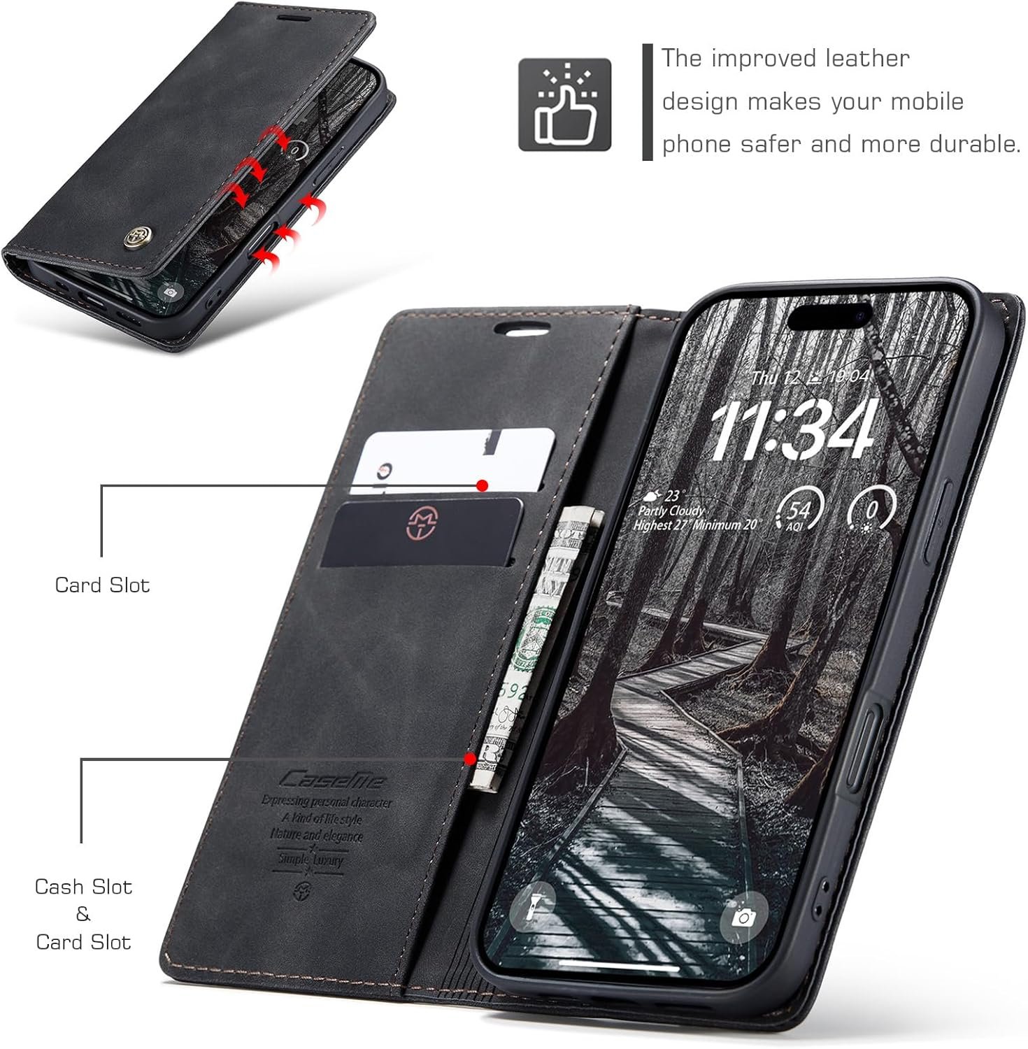 Detta plånboksfodral kombinerar elegant design med praktisk funktion.