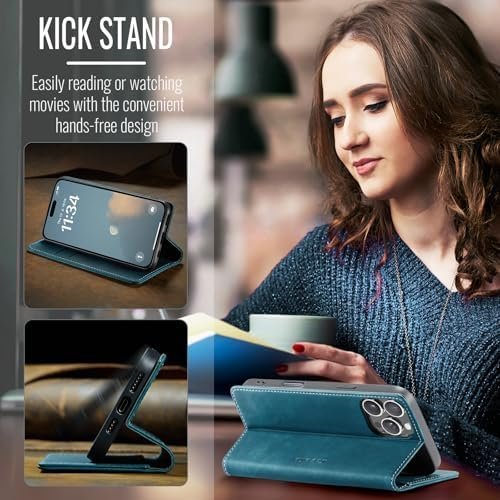 CaseMe 0013 Leather Wallet Case for iPhone 16 plus green