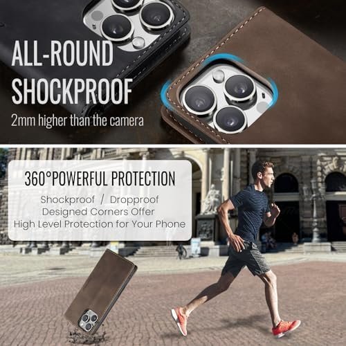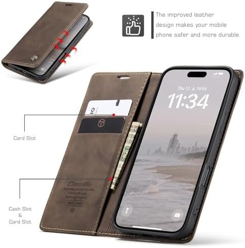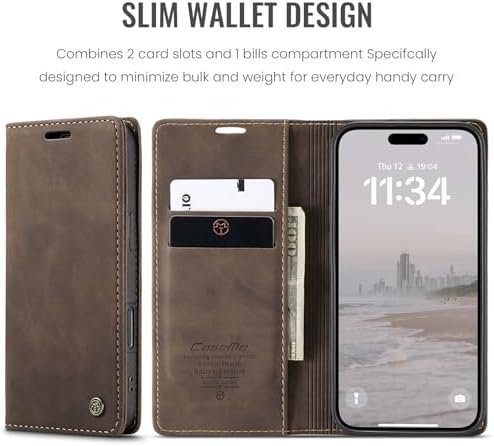 CaseMe 0013 Leather Wallet Case for iPhone 16 pro darkbrown