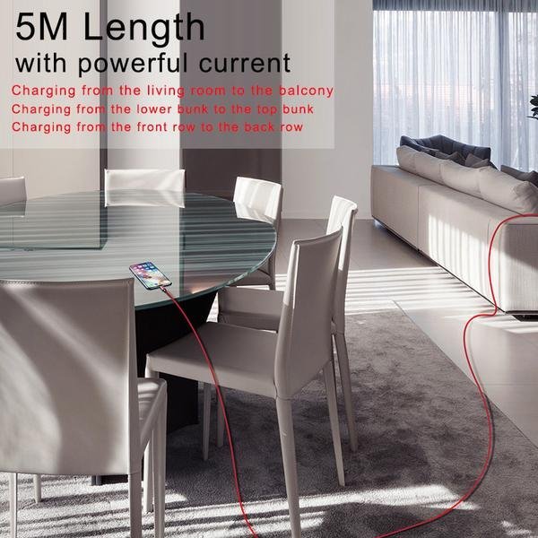 – Perfekt (5M) förlängning och uppgradering av genombrott i laddningslängden, du kan ligga på sängen eller soffan och använda dina enheter medan du laddar samtidigt. Och du kan använda fritt hemma, hotell, kontor, bil, resor etc.
