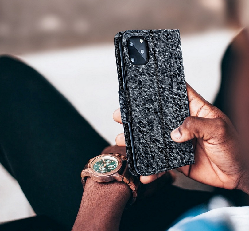 Fancy Book-omslag är en plånbok och skyddar din telefon i en. Omslaget har en ficka för bankkort och nödvändiga dokument och fälls in i TV-stativet, vilket gör det enkelt att titta på filmer.