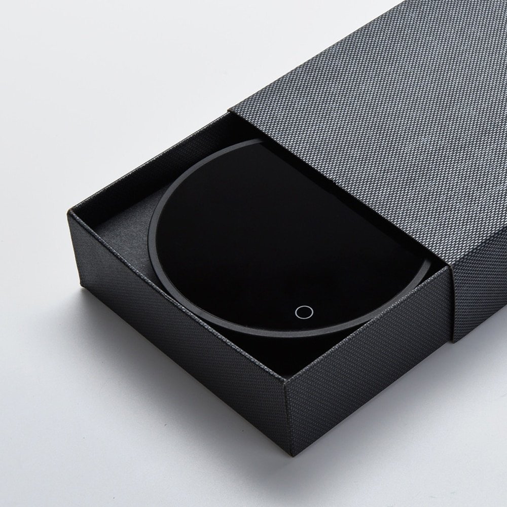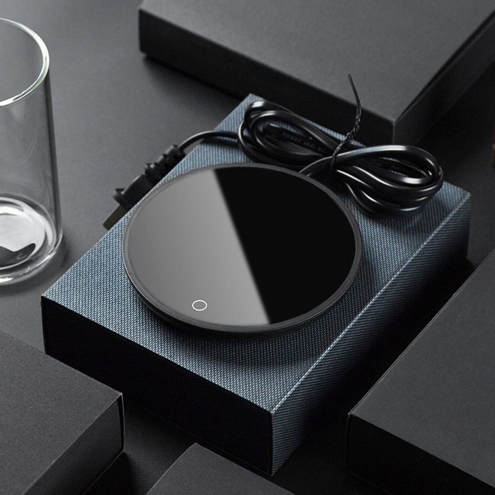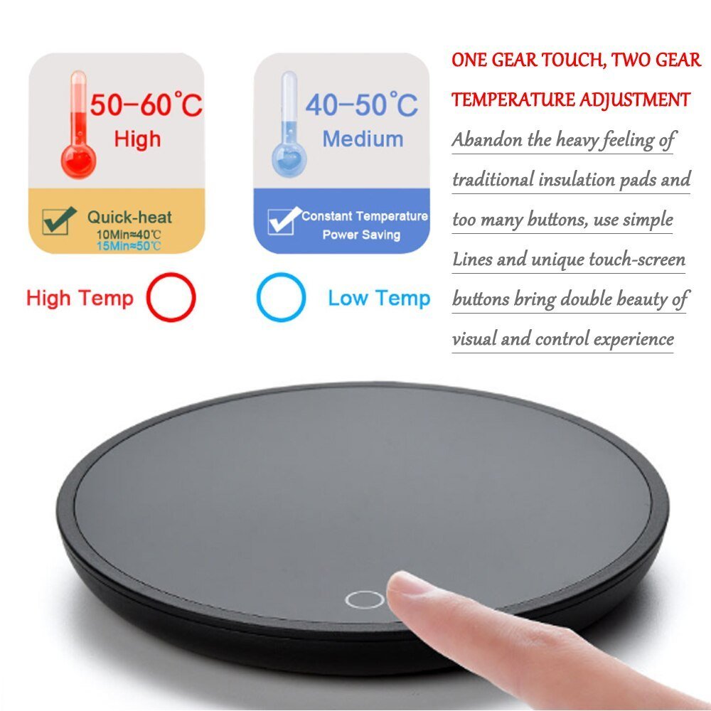 tem typ: Cup isoleringsplatta Material: ABS + härdat glas Värmeplatta: aluminiumlegering Färg: svart, röd, (valfritt) Storlek: ca 11,7×11,7×1,5cm / 4,6×4,6×0,6in Nominell strömförsörjning: 220V / 50Hz, Produkteffekt: 15W Intelligent konstant temperatur: 40 ℃ -60 ℃ Brytarläge: Pekbrytare
