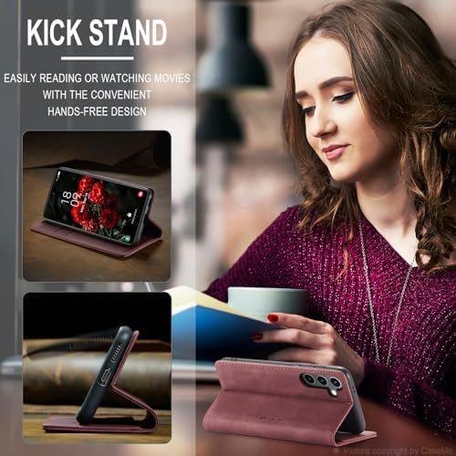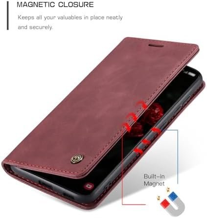 Läderfodral caseme 0013 för Samsung S24 ultra vinröd