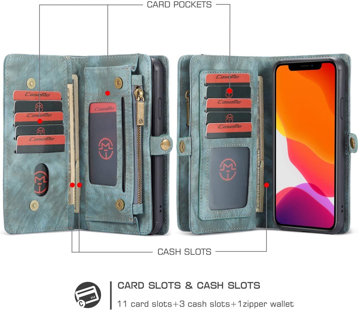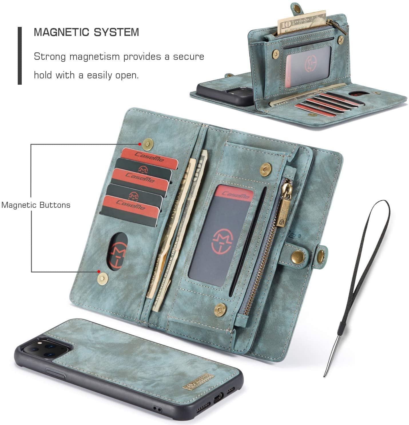 • 2 i 1 blixtlåsfodral: mobil-fodral med blixtlåsväska för småsaker eller hörlurar, om du behöver använda trådlösa laddare, öppna plånboken och användbar innerfodralet. Plånboksfodral med magnetisk dragkedja din mobil
