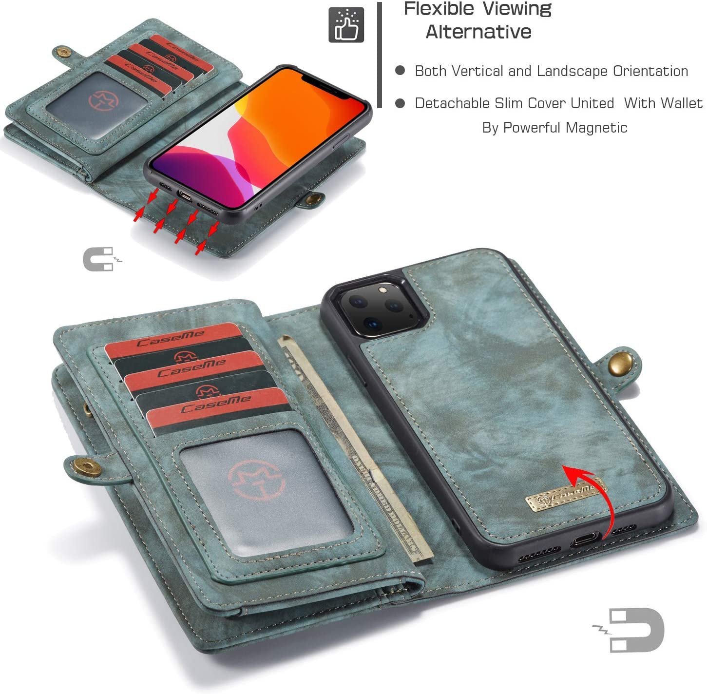 • STARK MAGNETISK ANVÄNDNING: Stark magnet påverkar inte digitala enheter och kreditkort. Lätt att öppna och stänga, även du kan bara använda det separata PU&TPU-bakstycket som ditt val hemma eller på kontoret.
