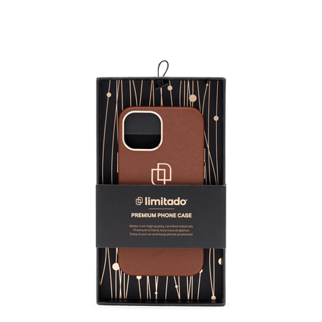 Limitados stilsäkra skal i läderimitation med ett vackert brunt Saffiano mönster på utsidan och ett härligt microfiber foder på insidan. En utsida som ger din din telefon en lyxig känsla samtidigt som den håller din iPhone säker från stötar. Knappar och kamera ram skyddas av skalets metallic detaljer som förhöjer den eleganta känslan. Den högkvalitativa finishen och ger din smartphone en boost och finns i 4 färger Svart, Forest Green, Brun och Midnattsblå.