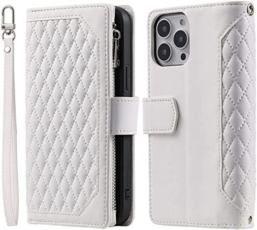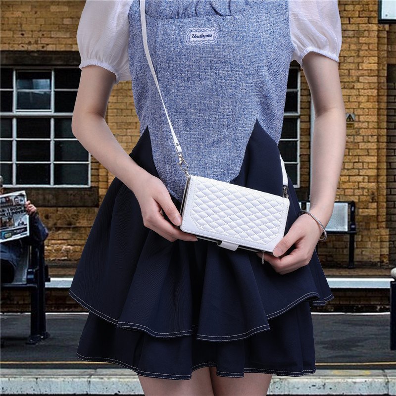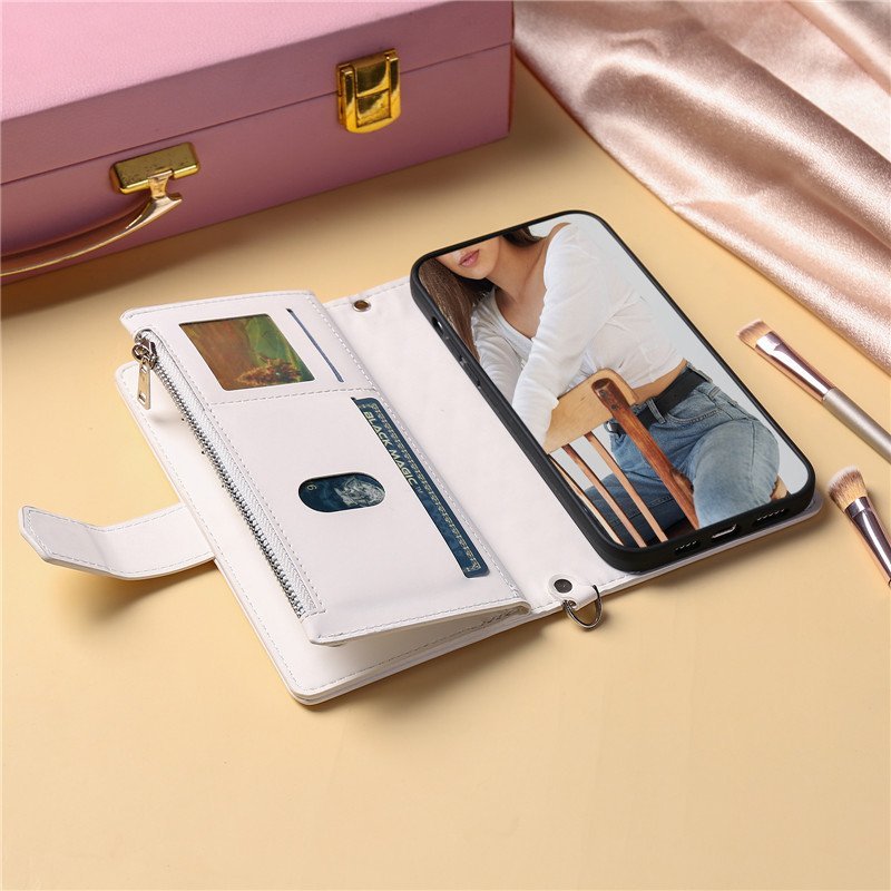 Long Lanyard läder fodral för iphone 14 med 7 kortplatser vit