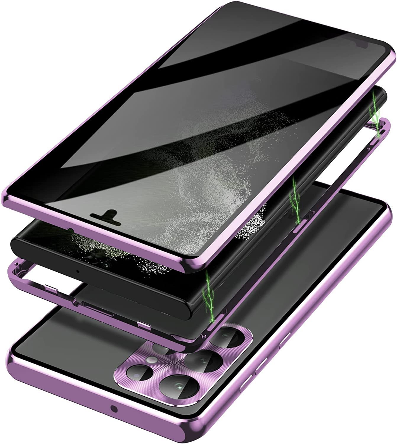 Det visuella området är 60° (vänster & höger 35°), vem som helst kan bara se mörka bilder på båda sidor. Det kan skydda din information, chattpost, betalningslösenord från att titta. Obs: Denna Galaxy S23 plus-sekretessskärm stöder INTE fingeravtrycksläsaren. ★ Supermagnetisk adsorption: Det finns totalt 16 magnetiska punkter omgivna i metallramen. Tack vare den starka magnetiska adsorptionstekniken kan de övre och nedre höljena på fodralet fästas tätt. Automatisk magnetisk attraktion på en sekund. Lätt att installera och ta bort.