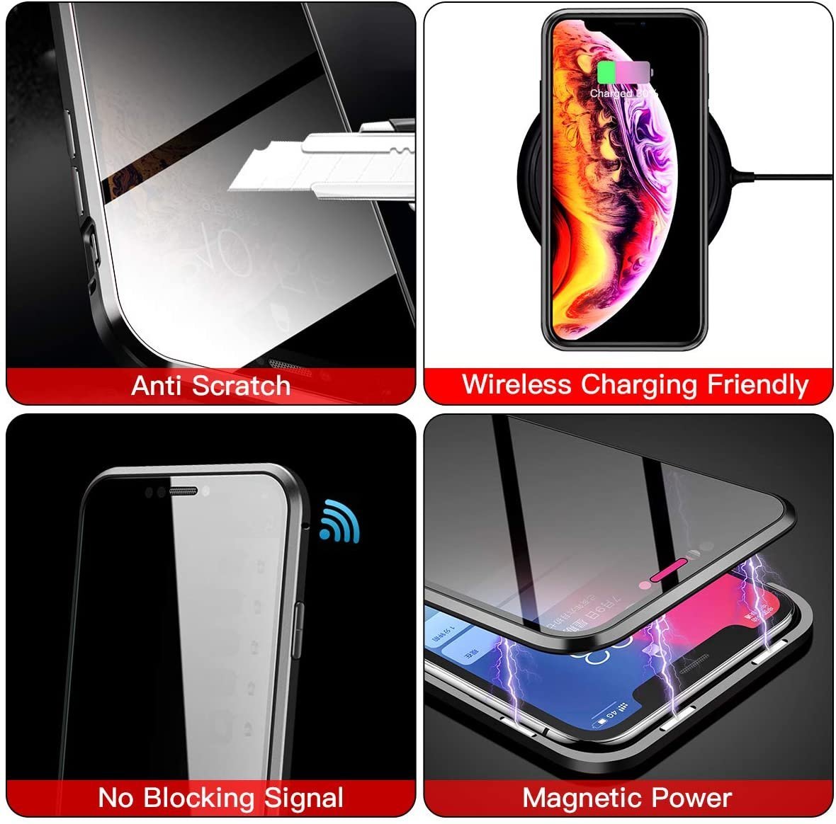 【Dubbelsidig genomskinligt härdat glas och magnetisk adsorption Privacy Privacy Magnetic iPhone 11 pro max skalet har frontskydd + baksidan visar Apple-logotyper och den ursprungliga telefondesignen tydligt. Magnetisk adsorption Privacy Magnetic iPhone 11 pro max skalet anta multipoint och stark magnetfältadsorptionsteknologi med inbyggd magnet omger Privacy Magnetic iPhone 11 pro max skalet. Den kraftfulla magnetiska adsorptionen gör att din iPhone 11 pro max klistermärke ut inte publiken.