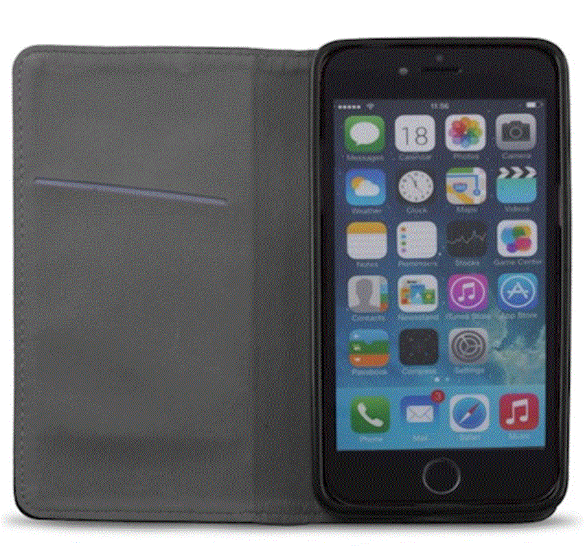 fodralet har en liten, praktisk ficka för dokument och TV-stativfunktionen – särskilt användbar när du tittar på filmer eller surfar på internet. Telefonen placeras i ett silikonhus, som har utskärningar för vissa funktionsknappar som tillåter gratis användning av telefonen.